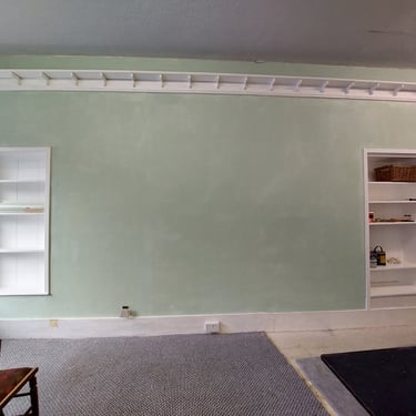 One of the most satisfying aspects of our renovation process has been the decoration. We’ve chosen the same calm, natural colours that we chose here on our website, so the walls in the front of the shop have been painted in a light green and a warm cream. The old wooden wall panelling at the back of the shop gives hints of its history in the variety and shapes of the colours left on the panels from many repaints over the years. We've kept this and stabilised the flaking paintwork with a couple of coats of clear varnish. This, coupled with the exposed brickwork gives a very different feel in the back half of the shop compared to the front.